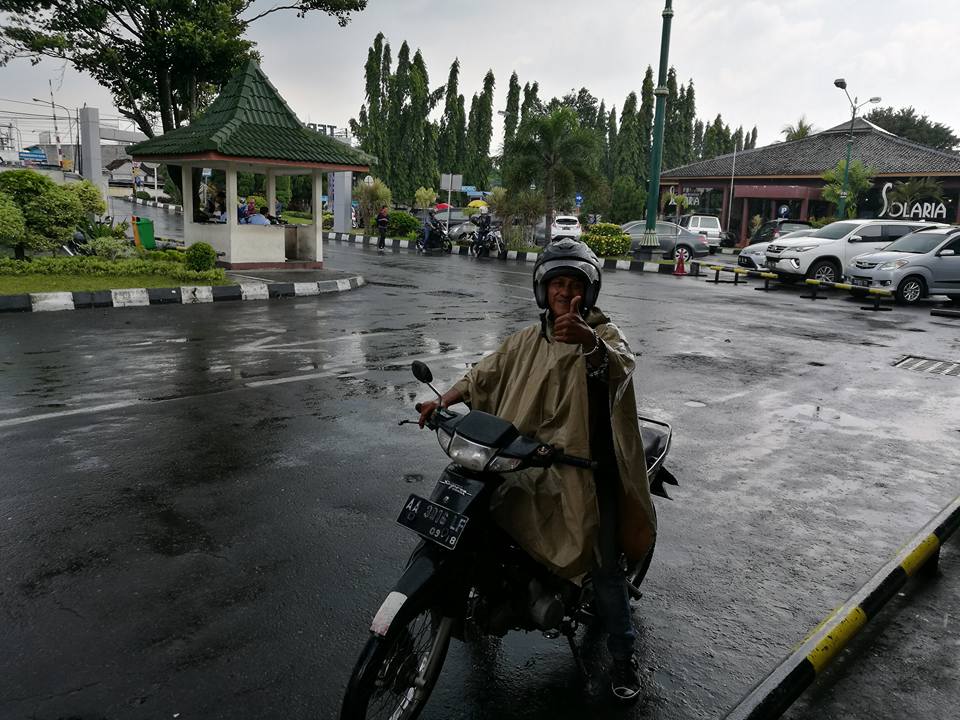 ボロブドゥールからジョグジャカルタに向かうため、ターミナルでバスを待ってたら、「バイクで連れてってやるよ」とバイクタクシーのおじさんが声をかけてきた。