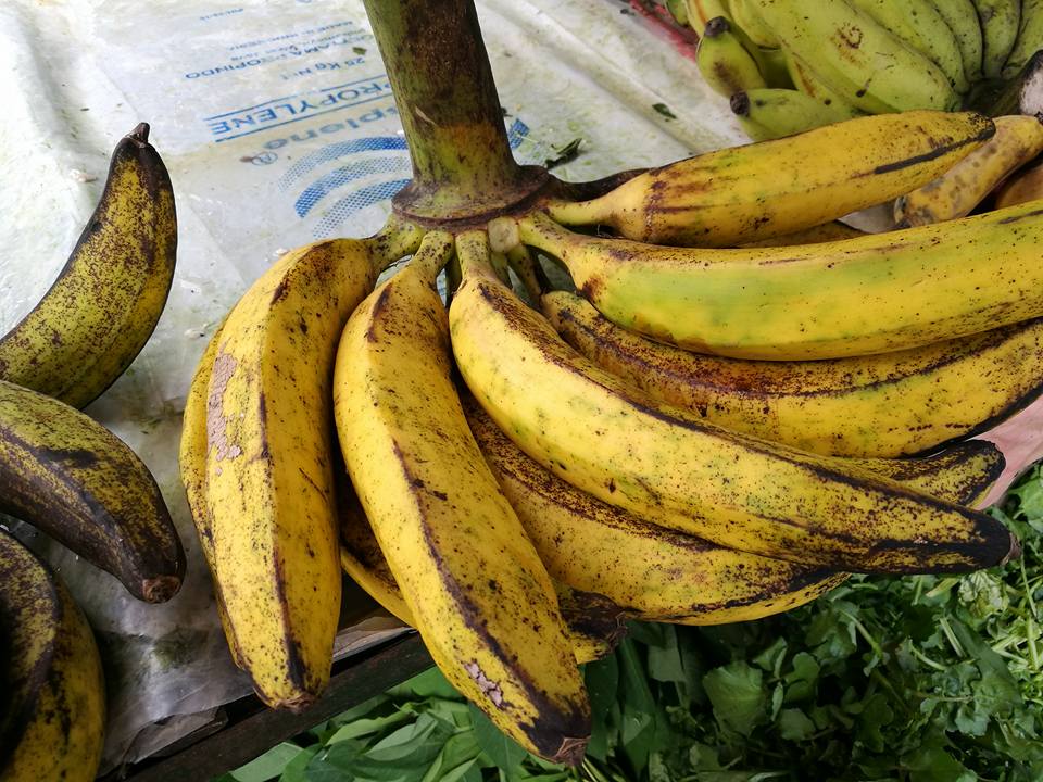 (この時は、バイクタクシーに乗って見たくて下調べしていたのと、「直感」で、この人たちは大丈夫!と思ったから頼んだけど、本当に空港に連れて行ってくれるのかどうかは謎なので、同じことを試してみたい人は、くれぐれも自己責任で!) 市場でバナナ買って、食べてみたり。