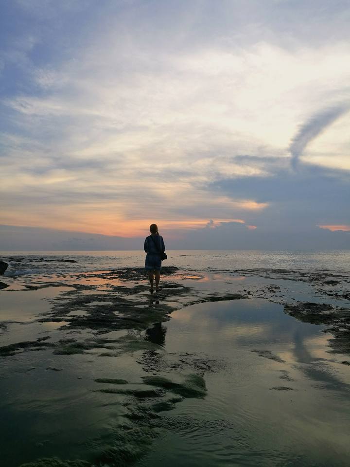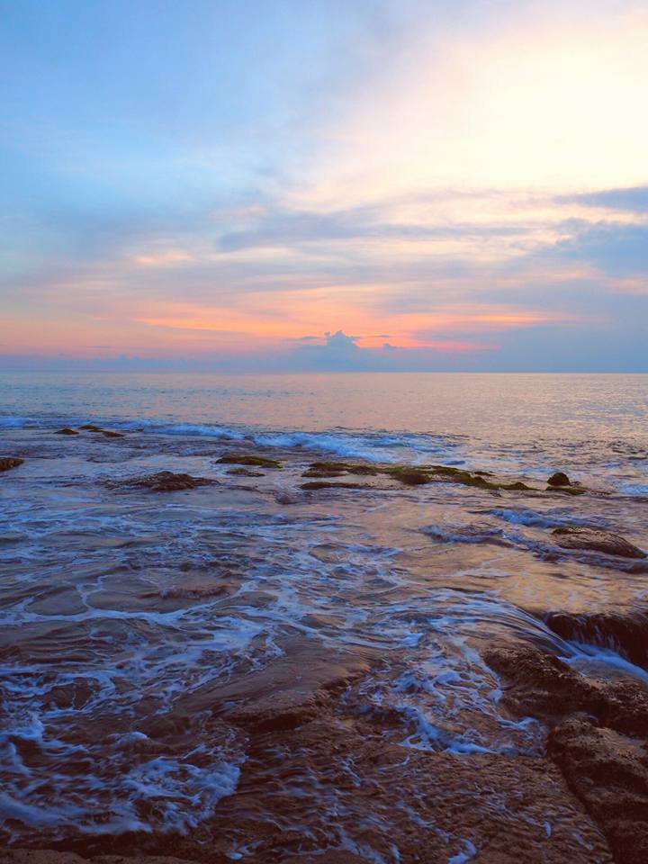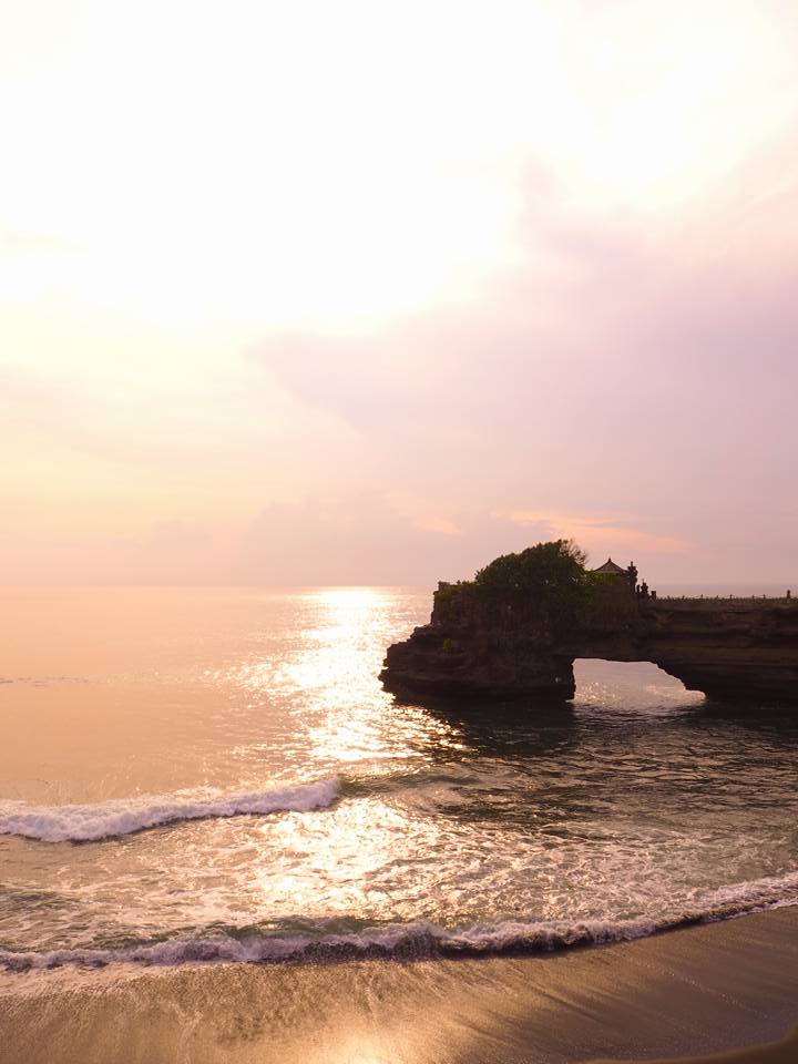 インド洋にうかぶヒンドゥー教の寺院。夕暮れには、紺と黄金の空と海に変化する、美しい寺院です。