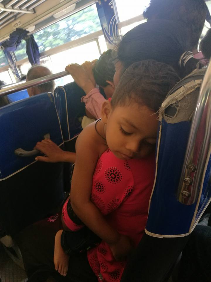 バスの中ではずーっと大音量の音楽が。今はすいたけど、途中は立っている人もいるくらい満員で、雨が入るから窓もしめて、サウナ状態。かわいいスリランカ・ベビーが近くにいたので癒されました(*^^*)