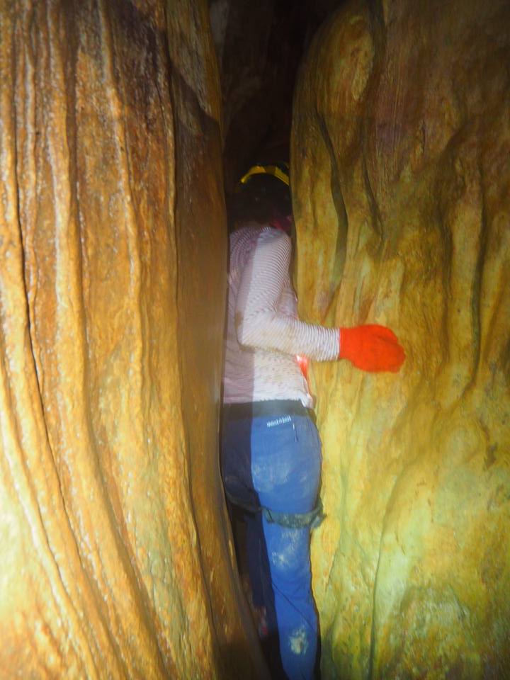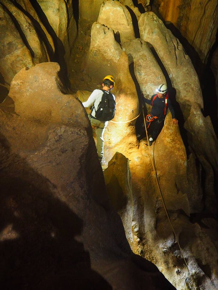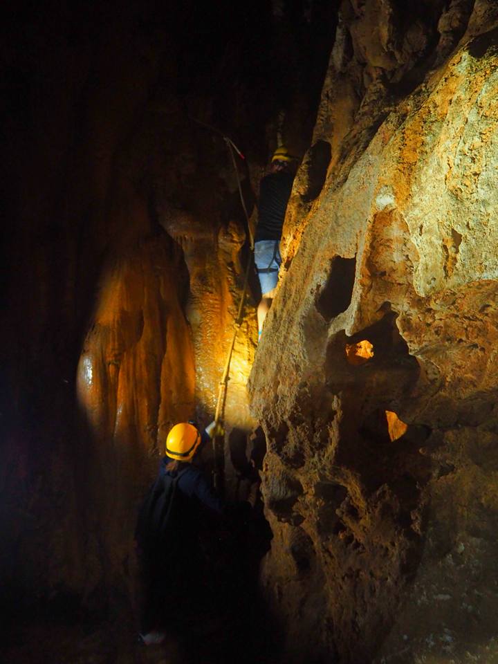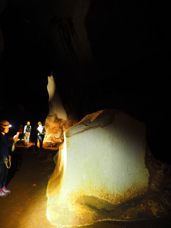 人生初の巨大な洞窟探険に挑戦。真っ暗なので、頼りは参加者のヘットライトのみ。写真は明るくしてるけど、実際はほぼ闇です。そんな中、1時間かけて行けるところまで突き進み、少し開けたところでライトを消して、完全なる闇を体験。そのあとにまた、1時間かけて戻ります。