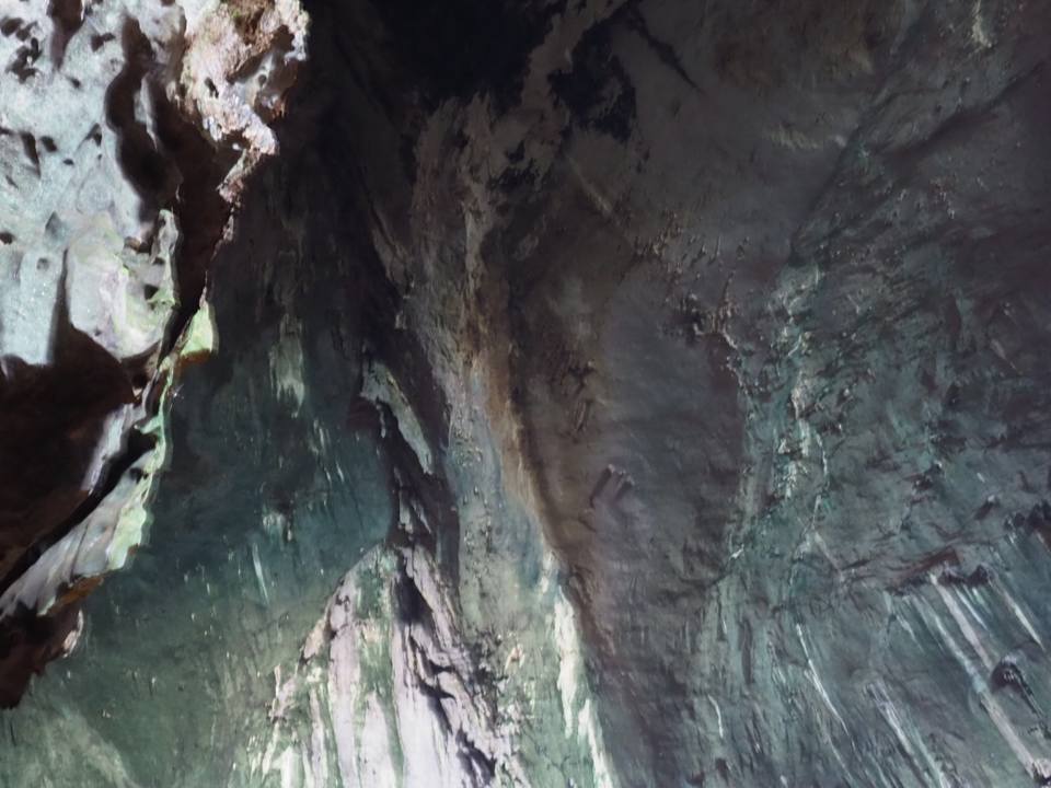 一枚目の写真の上部の岩影に見える黒い固まりがコウモリ軍団(笑)中を歩くと、いたるところにコウモリ軍団がいる。