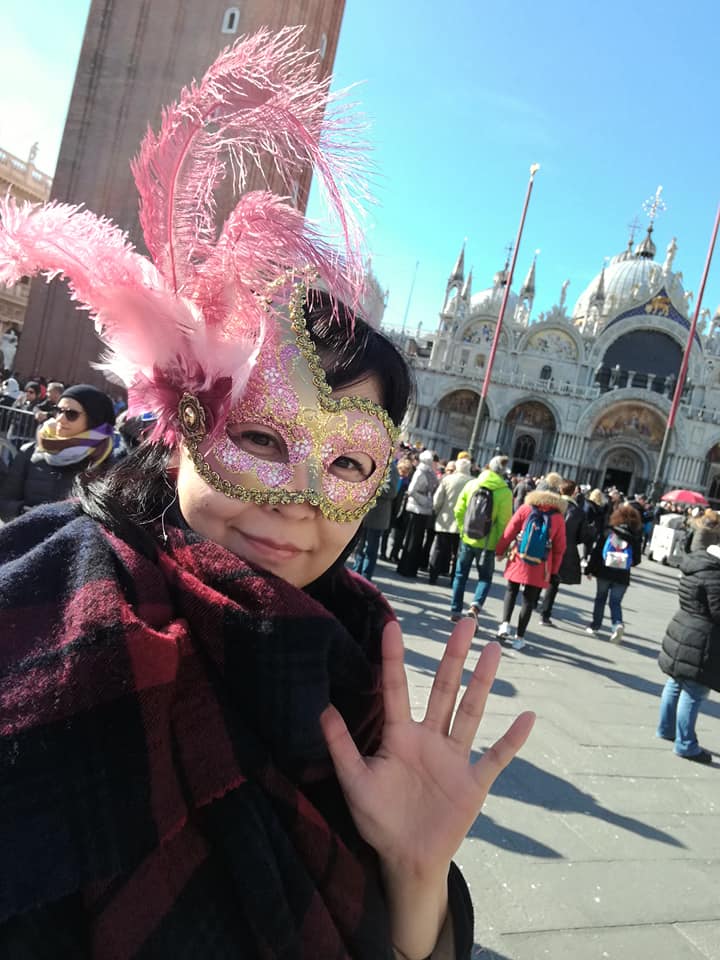 私も・・15ユーロで買いました。似合いますか?(笑)「これ中国製、こっちは安いけどすぐ壊れる。だからイタリア製のこれがいいよ」と言われたのに、ソッコーで壊れました(笑) ここにいると、中世に迷い混んだようです。こんな仮装をつけていたら、ほんとに誰かわからない。なので中世の人はこれで悪いことしまくってたんだろうな。・・・って妄想がとまりません(笑 私だったらする!)