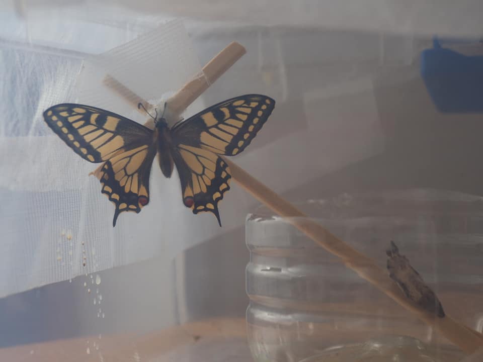 昨年秋に、厚真にボランティアに行った際に引き止ってきた幼虫ちゃんが、越冬後、見事にアゲハ蝶になりました!!