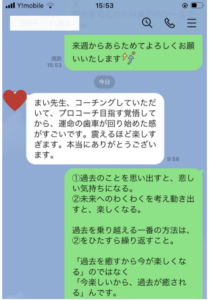 クライアント&現在コーチングスキルを教えているゆうこさんから、こんなLINEが届きました。