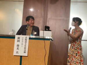 UHB(北海道文化放送)で、平日の午後4時50分から放送している「みんテレ」の、メインキャスターを務める「廣岡俊光」アナウンサーをお迎えして、講演会を開催いたしました。