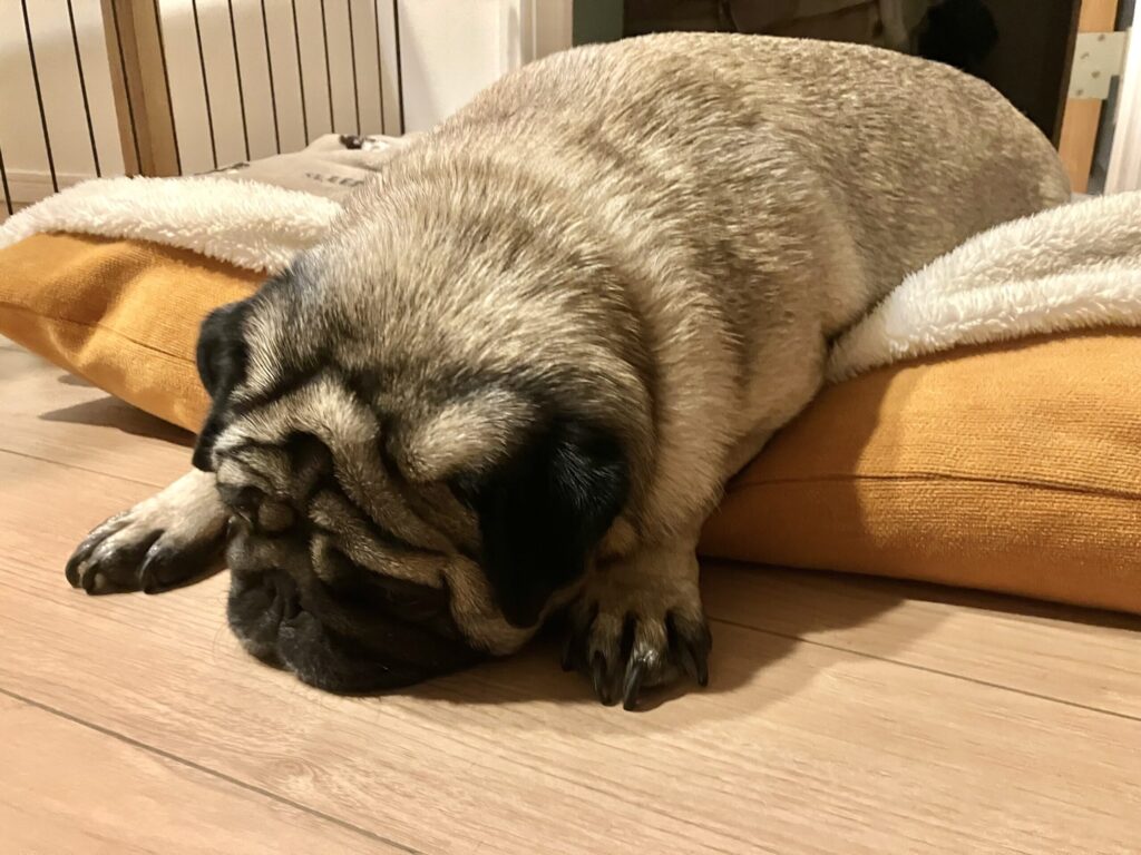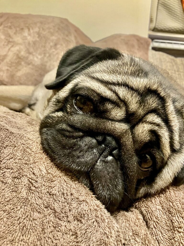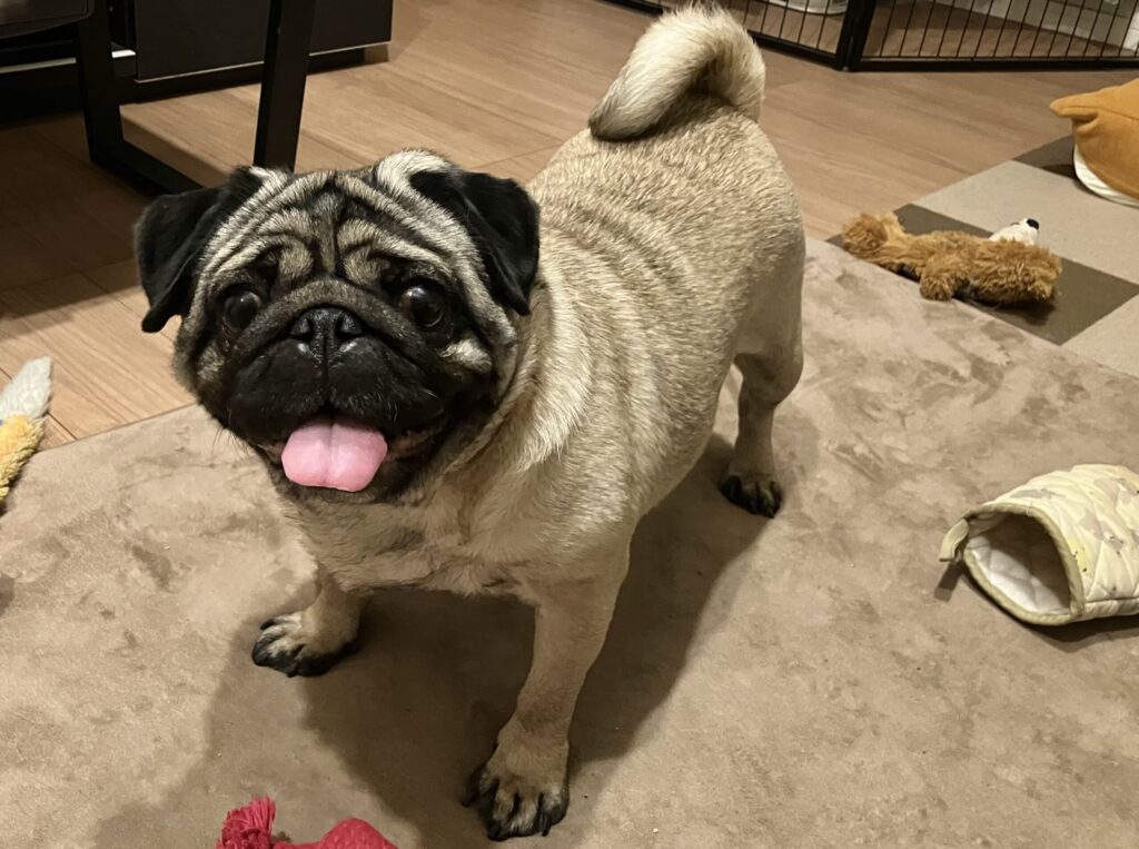 3歳の時にブリーダー繁殖犬の引退犬として我が家にやってきたパグのまる。