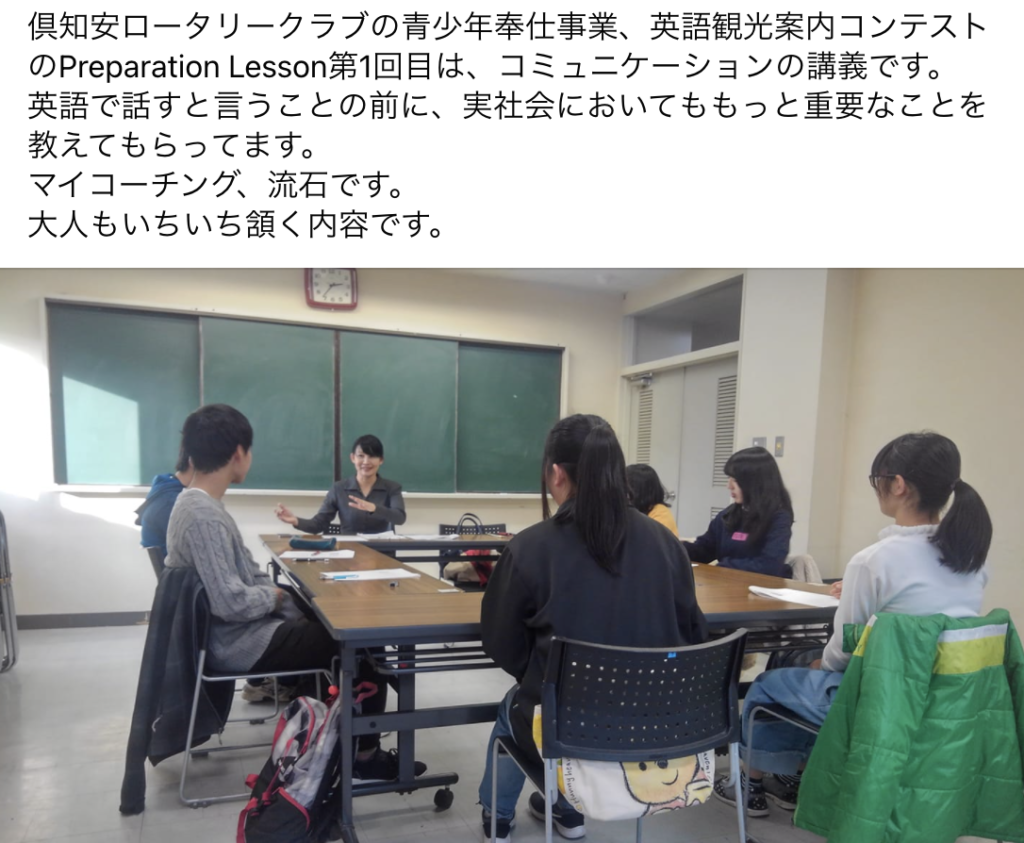 英語観光案内コンテストに出場する高校生たちにコミュニケーションの講義をさせていただきました。